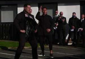 Zinzan Brooke leads haka for Sgt Matt Ratana
