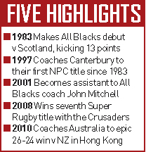 Coaching history Canterbury, Crusaders, New Zealand (asst)