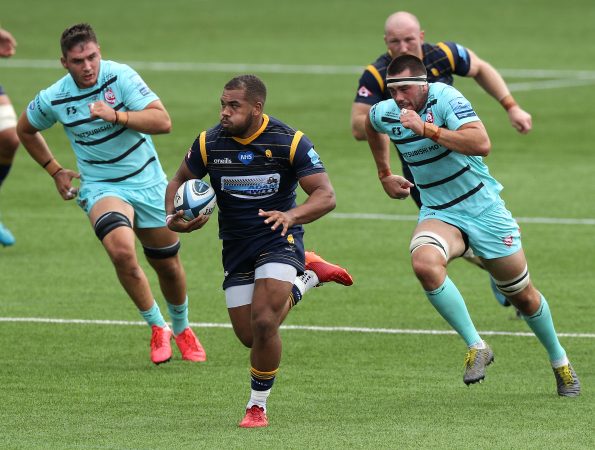 Getaway man: Ollie Lawerence of Worcester evades Gloucester (Getty Images)