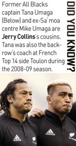 Collins has a few old friends over in Munster, the likes of former All Blacks team-mates Doug Howlett and Sam Tuitupou as well as Lifeimi Mafi, but he won’t be indulging in any text banter before crossing the Irish Sea. “They’re pretty serious customers and Dougie’s pretty fast so I wouldn’t want to p*** him off before the game. There’s always time to catch up and have a laugh afterwards.”
