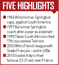 For the next four years he coached Stade Français, taking them to the 2001 Heineken Cup final and bringing the French title to Paris twice. He returned to the Test arena in 2007, taking over from Pierre Berbizier to become Italy’s coach in the aftermath of the World Cup. At the time Mallett said: “Trying to make Italy competitive and hopefully successful is as big a challenge as I’ve ever had as a coach.”