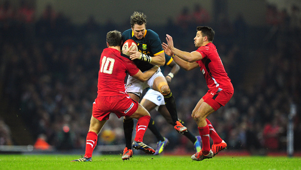 Wales and South Africa were tied at 3-3 with 32 minutes on the clock and a score from either team before half-time could have been critical. The Springboks’ huge lock Eben Etzebeth was charging into the Wales 22 and looked odds-on to score the first try of the game, when who should dash back to bring him to the ground short of the line but Wales full-back Leigh Halfpenny. It mattered not that Etzebeth was ten inches taller and five stone heavier than Halfpenny – he was hauled to the floor and the day was saved.