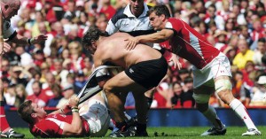 JR: It was quite funny watching the Wales-Barbarians game on telly when Carl Hayman’s shirt came off and the ball got stuck in it. I always love to see a big tackle, then for the players to get up and shake hands. There’s always a bit of sledging too. It’s a great feeling to dish it out when you’re winning but it’s not so good when you’re on the receiving end and losing. I get the usual, something about my massive jaw or my massive head.
