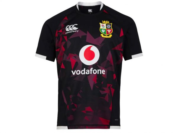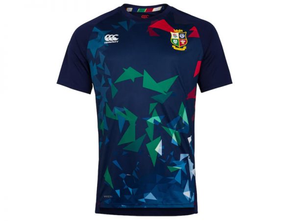 We start with the official warm-up shirt of the Lions. Available in black, it has a number of design features we like, such as the bold geometric print in different colours, the high-quality stitching, and the presence of Pro-Fit, which means the shirt is fitted but has a little bit of extra room around the arms and stomach.