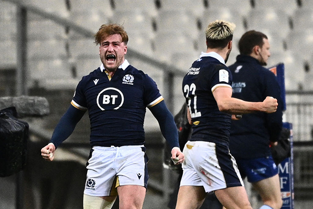 Stuart Hogg celebrates Scotland’s win over France in Paris (AFP/Getty Images)