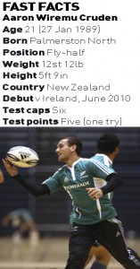 It’s a testament to Cruden’s determination that just seven months after receiving the all-clear, he was lifting the Junior World Cup after leading the New Zealand U20 side to glory in Tokyo. This year his form for the Hurricanes in his debut Super 14 season was too good for Graham Henry to ignore and the 21-year-old was selected in the All Blacks squad for their June fixtures against Ireland and Wales, as well as the Tri-Nations, and has won six caps to date. With all those achievements under his belt, it’s something of an understatement when Cruden says “rugby has taken off” since regaining his health.