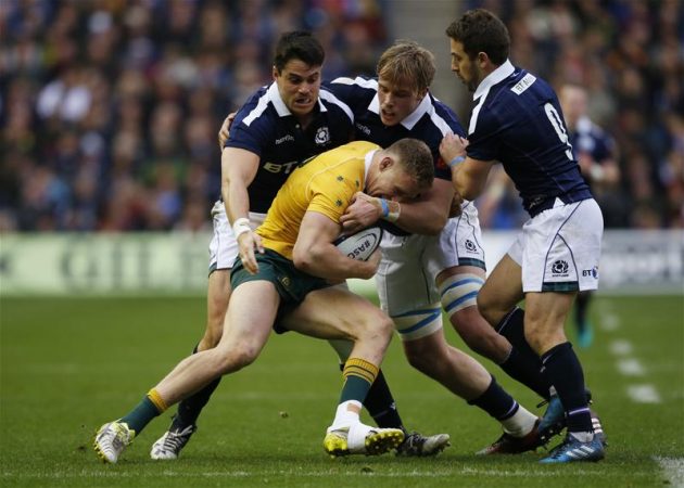 Standing at first-receiver, he lures Stephen Moore out of the defensive line and transfers the point of contact by tipping a deft pass to carrier Ross Ford. Gray then follows the ball and hits the ensuing ruck to generate quick ball for scrum-half Greig Laidlaw. A handful of phases later, Scotland score to go 17-10 ahead.