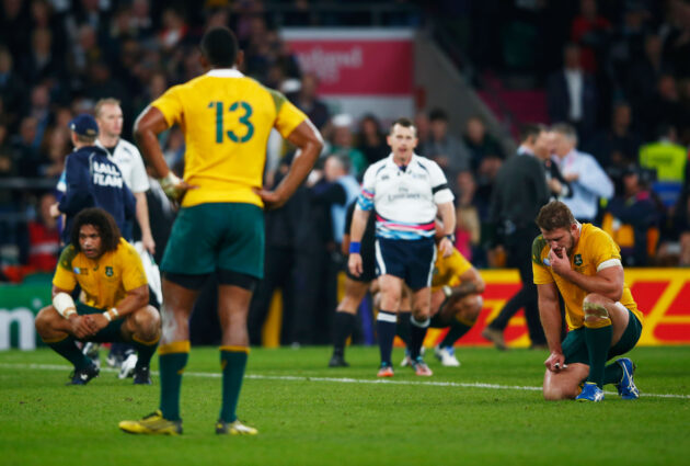 LONDON, ENGLAND – OCTOBER 31: A dejected James Slipper of Australia looks to the ground after defeat in the 2015 Rugby World Cup Final match between New Zealand and Australia at Twickenham Stadium on October 31, 2015 in London, United Kingdom. (Photo by Chris Lee – World Rugby via Getty Images/World Rugby via Getty Images)