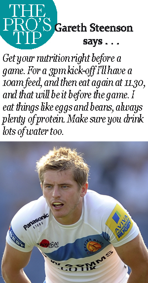 As a general guide, men should aim to drink about 2.5 litres of water a day and women slightly less. This should rise if you’re training or playing a game because many people will lose 2.5 litres of sweat in an hour, depending on body size – rugby players could lose more.
