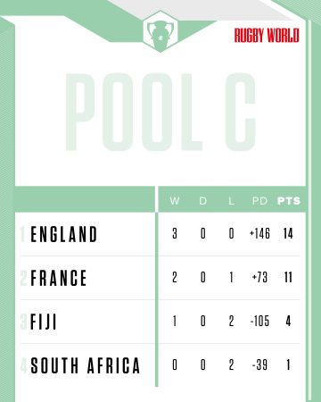 France are also through after they wrapped up their pool campaign by beating Fiji 44-0 to confirm their own place in the last eight, where they will play Italy.
