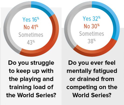 The key findings concerned player welfare with nearly 60% of players saying that at times they struggle to keep up with the physical load of competing on the series while 70% struggle with the mental load.