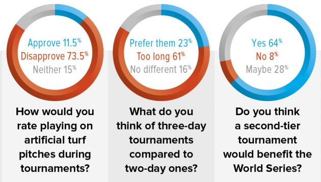 As for a possible revamp of the World Series structure, more than 60% of players think three-day tournaments are too long and 64% think a second-tier tournament would benefit the sport as a whole.